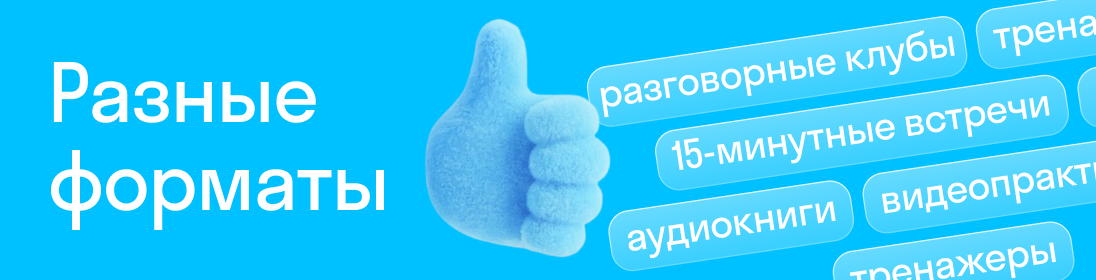 | А главное — все эти форматы легко встроить в жизнь. Можно не ждать урока, а поупражняться в дороге. Здорово же запомнить несколько новых слов, пока едешь на тренировку! А 15 минут на разговорную практику с иностранцем можно найти даже во время обеда — все материалы уже будут у вас в телефоне. |