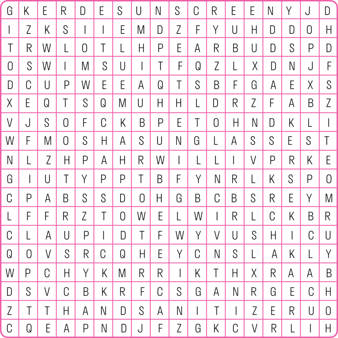 Помогите Ане собрать чемодан и ничего не забыть. Найдите и обведите слова из списка в головоломке. Слова читаются справа налево, слева направо и сверху вниз. | | |