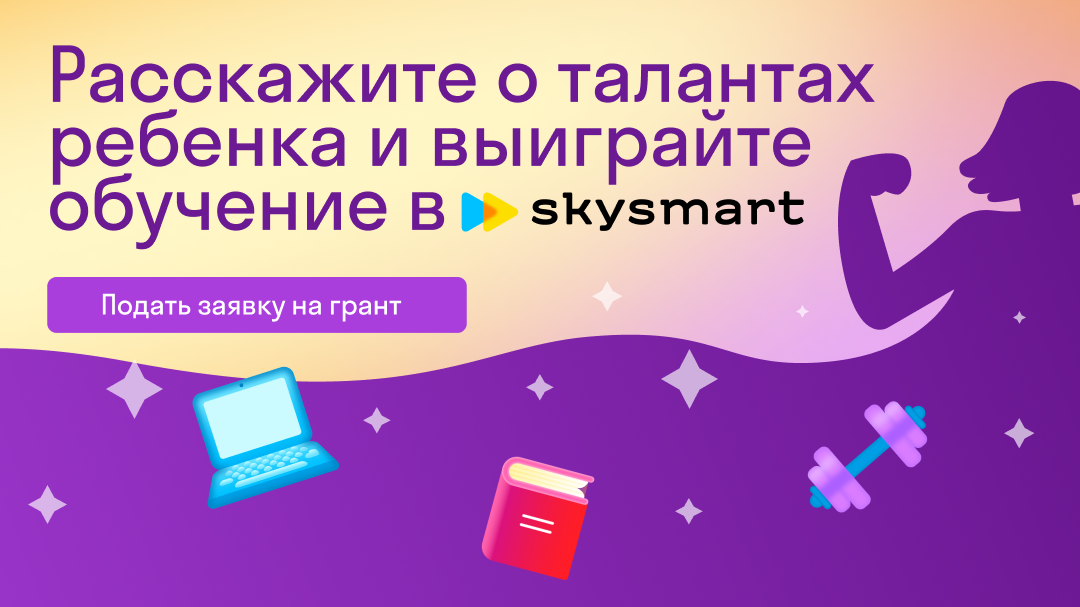 Гранты на обучение в Skysmart получат 100 школьников. Фонд проекта — 3 000 000 рублей. Участвуйте с вашими детьми и выиграйте год обучения в Skysmart! | | |