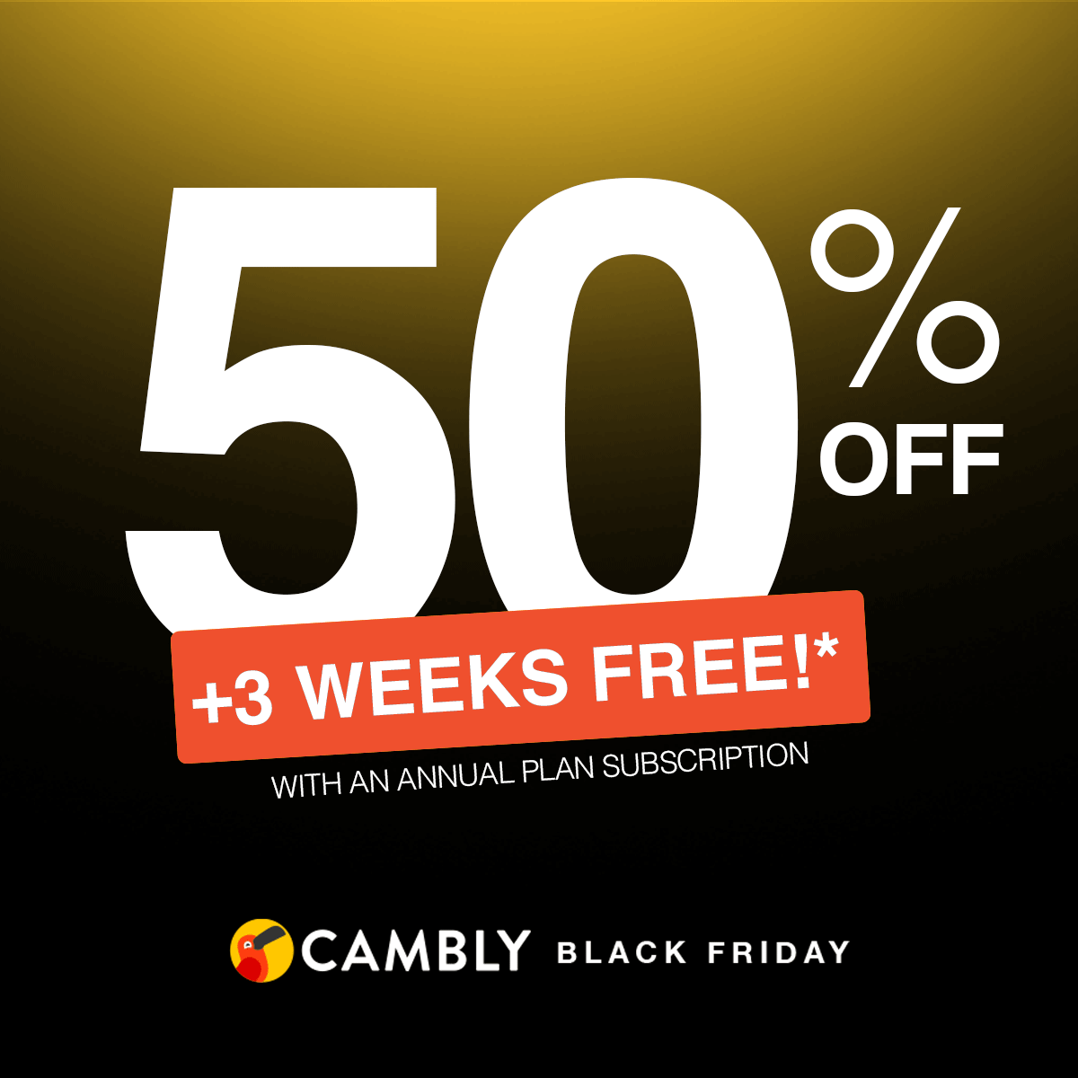 FYI: Don't leave it until tomorrow! On Cambly Black Friday, whoever gets in first place, earns so much more! USE CODE BLACKFRIDAY50