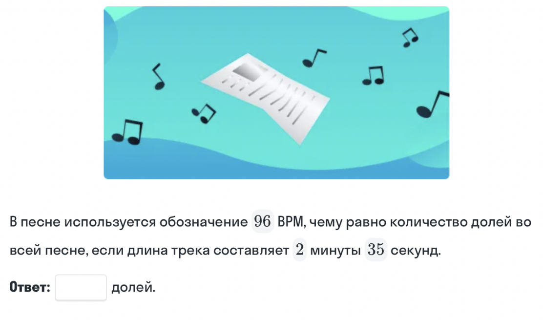 | Вот пример задачки из урока про музыку. Да-да, даже артистам нужна математика! | | | |