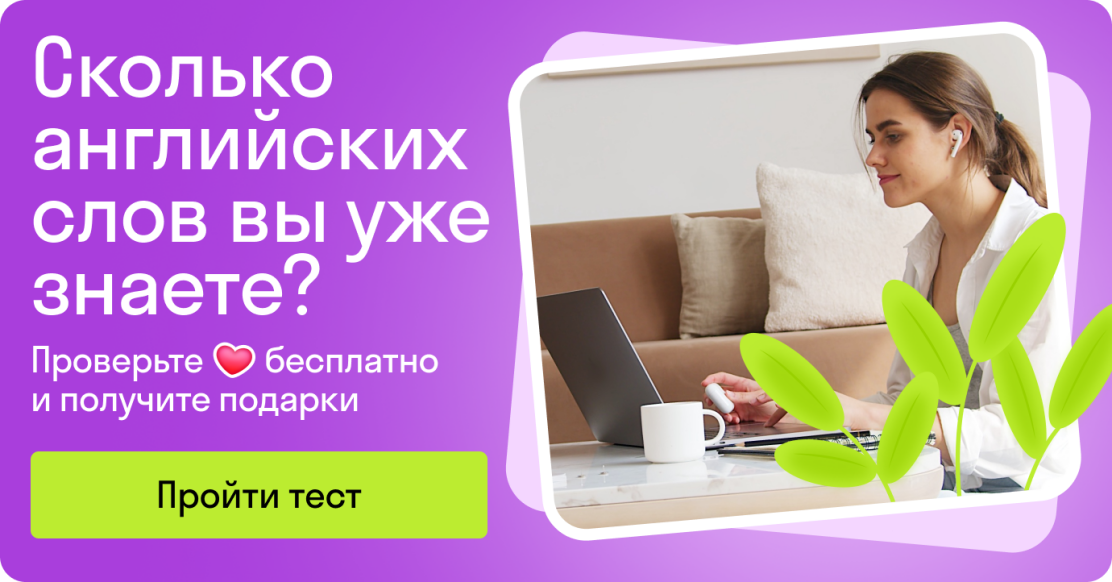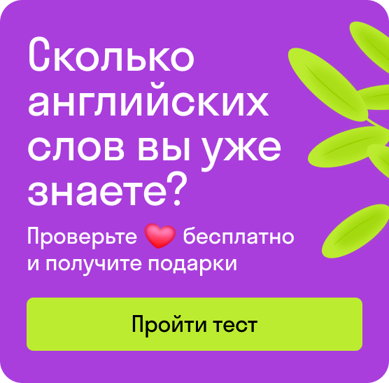 | | | | | | Всем, кто пройдет тест, мы пришлем подборку гайдов, чек-листов и других материалов, которые помогут расширить словарный запас, от методистов Skyeng. А чтобы получить персональные рекомендации, записывайтесь на бесплатный вводный урок. |