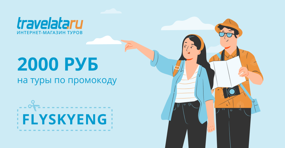 | Применяйте промокод FLYSKYENG и получайте скидку 2 000 руб. на любой тур от 100 000 руб. Предложение действует до 09.08.22 |