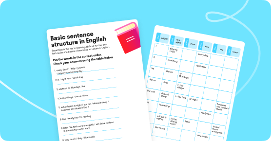 | Потренируйтесь и расставьте слова в предложении по порядку в сегодняшней домашке. Бонус — удобная таблица с правилом, которую можно распечатать для наглядности. |