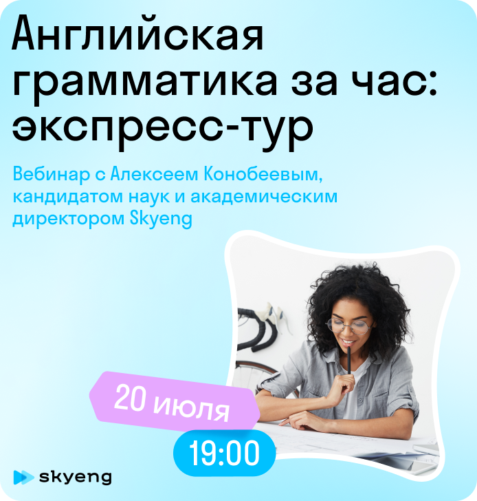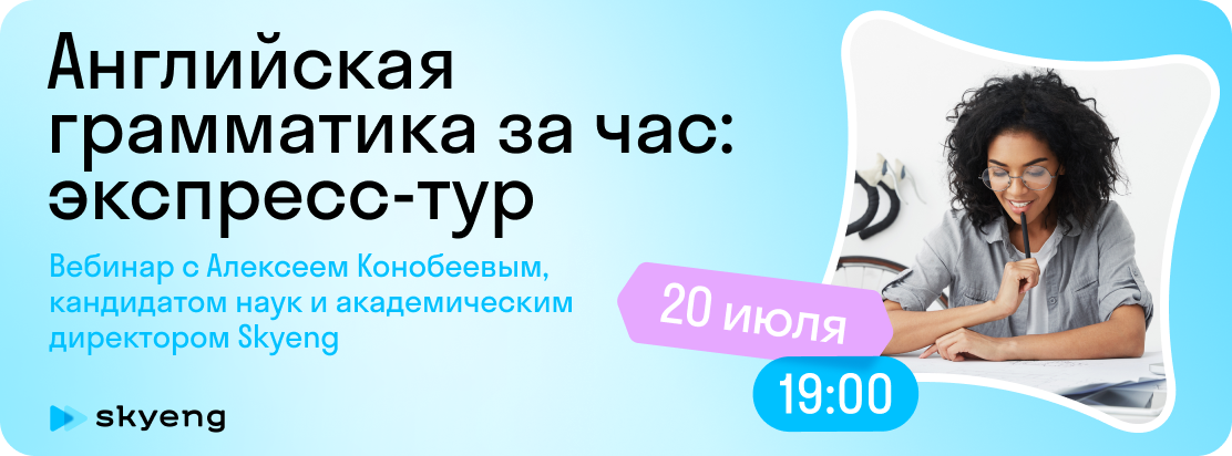 Приходите на бесплатный вебинар «Английская грамматика за час». На нем вы узнаете: