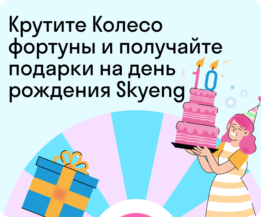 96 Skyeng — 10 лет! 🎁 Какой подарок заберете вы?Узнайте в Колесе фортуны >>>