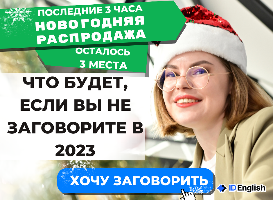 Решайтесь, у вас осталось 3 часа до окончания акции "4 курса по цене 1". У нас уже всего 3 места, это ваш шанс, который нельзя упускать! | | | | Искренне ваши, Анастасия Рычагова и команда ID English | | | |