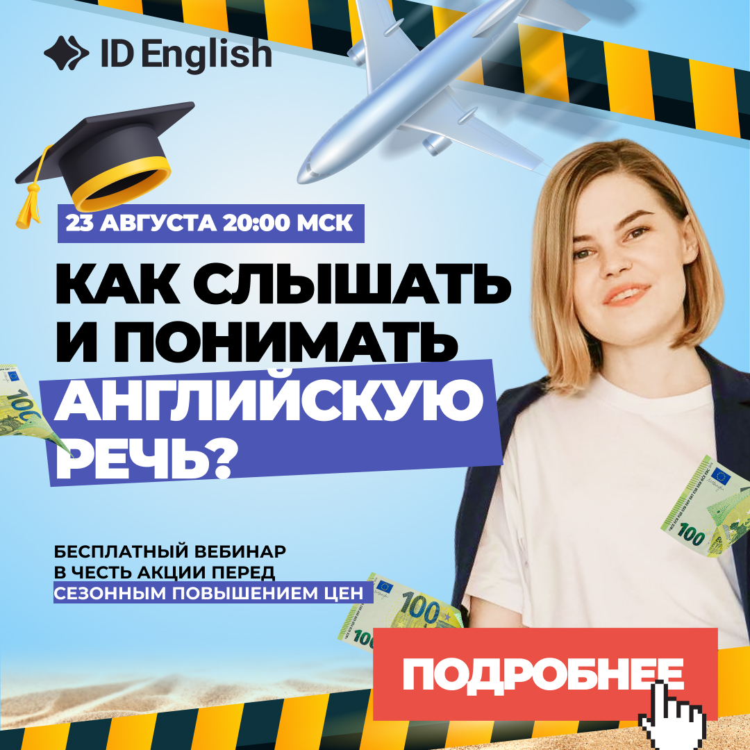 23 августа в 20:00 мск мы проведем мастер-класс для наших подписчиков: «Как слышать и понимать английскую речь». ⏩ На мастер-классе вы узнаете, почему у вас не получалось понимать и заговорить на английском раньше. Скажем по секрету, дело точно не в вас и не в отсутствие суперспособностей.