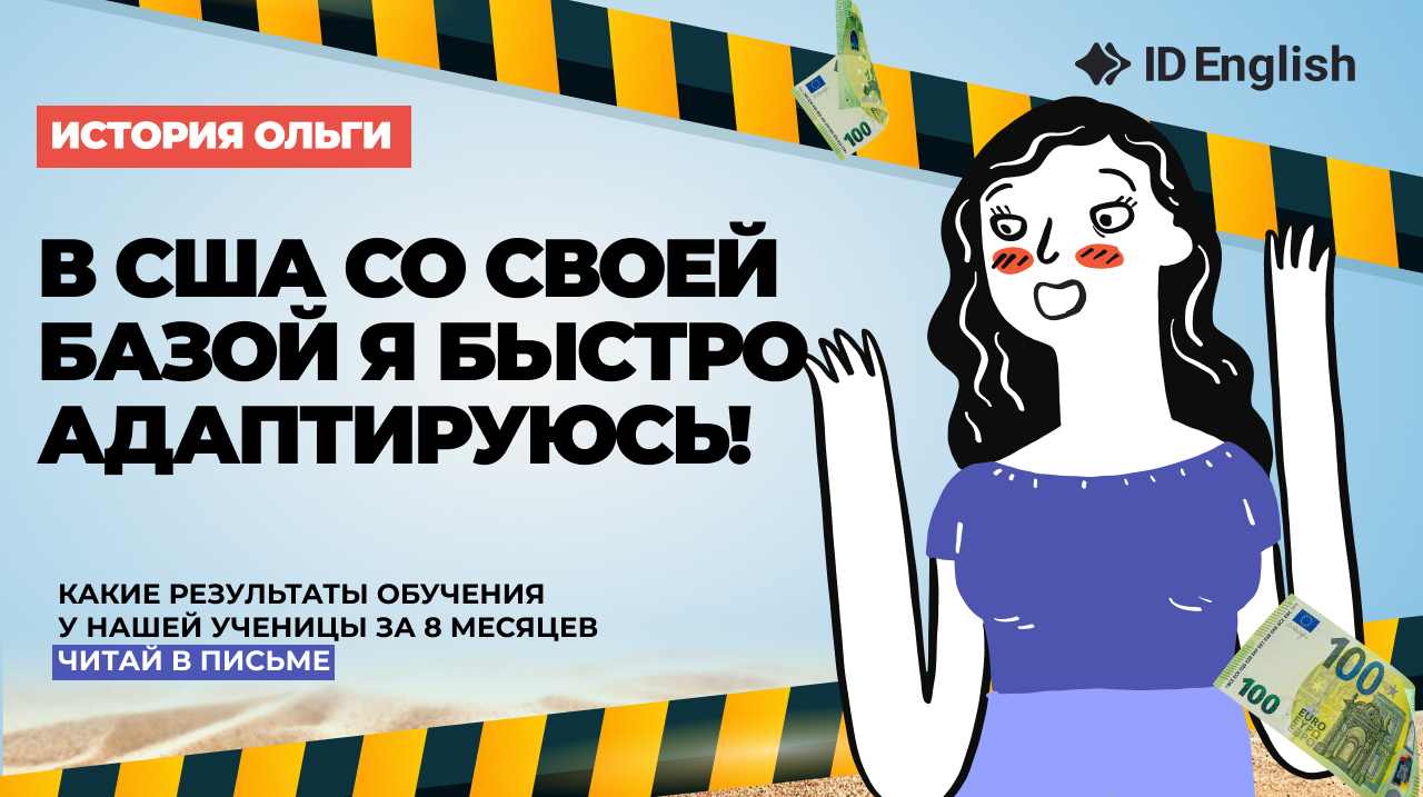 | Что было на старте. Английский Ольга не учила никогда, даже в школе. В ID English она пришла со знанием двух десятков слов. У семьи Ольги есть друзья в США и ей было стыдно разговаривать с ними. Не могла помочь ребенку с уроками.