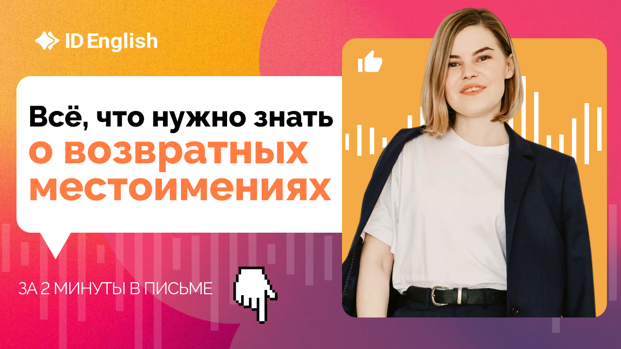 Это все, что вам стоит знать о возвратных местоимениях. Есть еще парочка нюансов, но если вы не профессор английского, то вряд ли с ними столкнетесь. Этой базы вам хватит и на наш разговорный клуб, и на общение с нэйтивами.