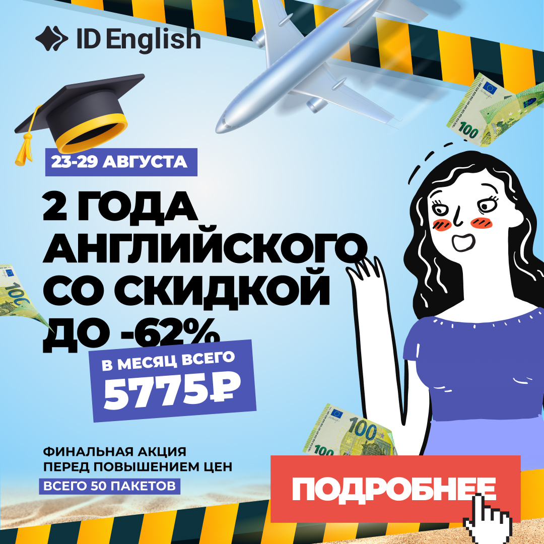 Да, что без ущерба!!! Сейчас САМОЕ выгодное время чтобы инвестировать в свой английский!!! Потому что только с 23 по 29 августа в нашей школе пройдет большая распродажа курсов английского. Которую мы так и назвали «Инвестиция в английский язык со скидкой до -62%!» |