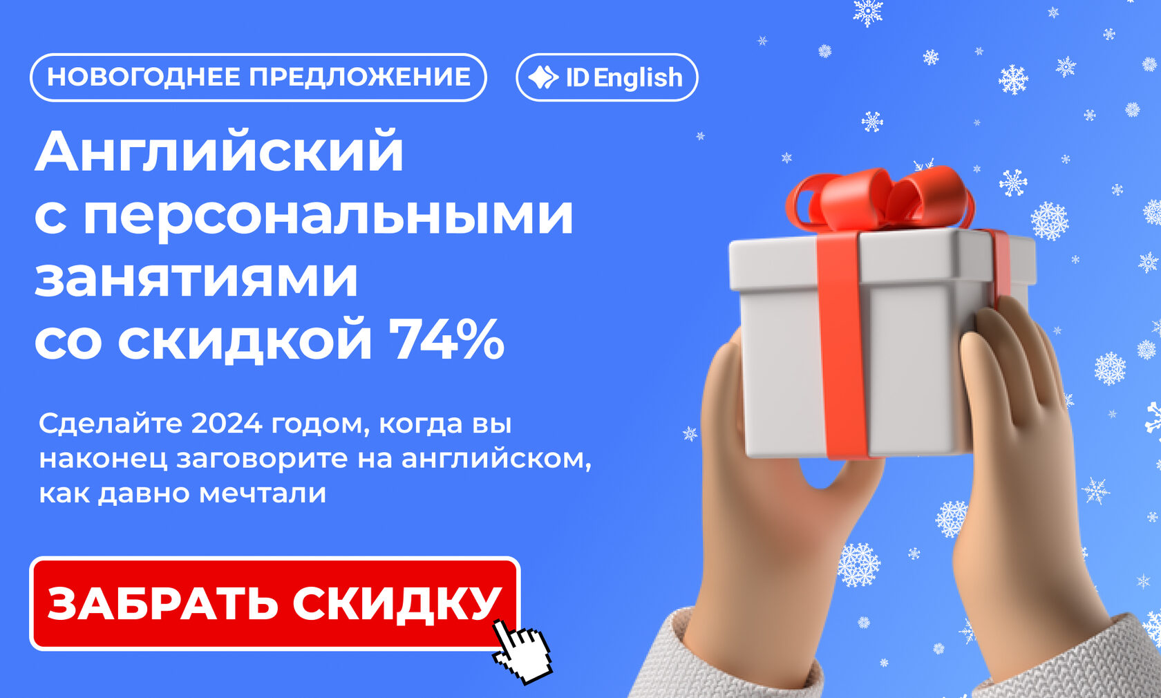 А еще, мне обидно, когда говорят что английский это дорого. Вообще нет. Сейчас, в рамках Новогодней распродажи, годовое обучение в ID English стоит от 5 750 рублей в месяц.