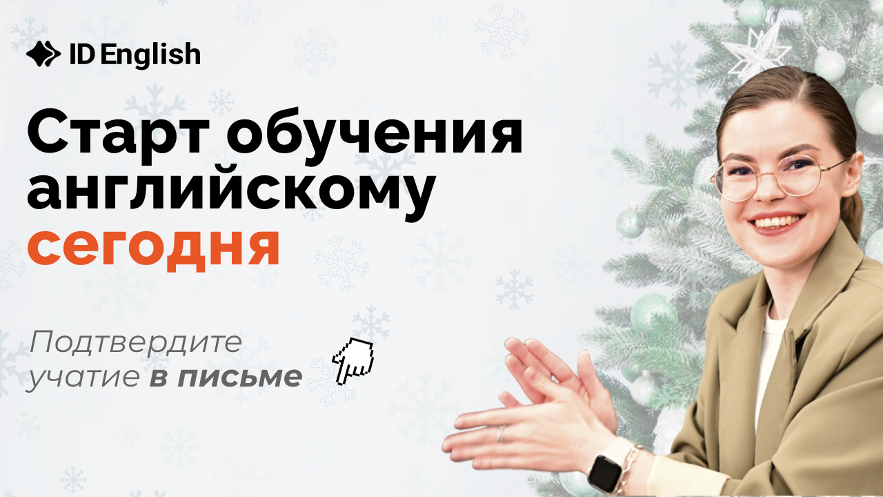 Встречаемся сегодня – 4 января в 20:00 мск. Реальная польза уже на первом эфире. 🎁 А еще новогодний презент для участников в конце эфира – доступ к обучающей платформе с фильмами и сериалами на английском. | | | | С любовью, команда школы английского ID English. | | | |