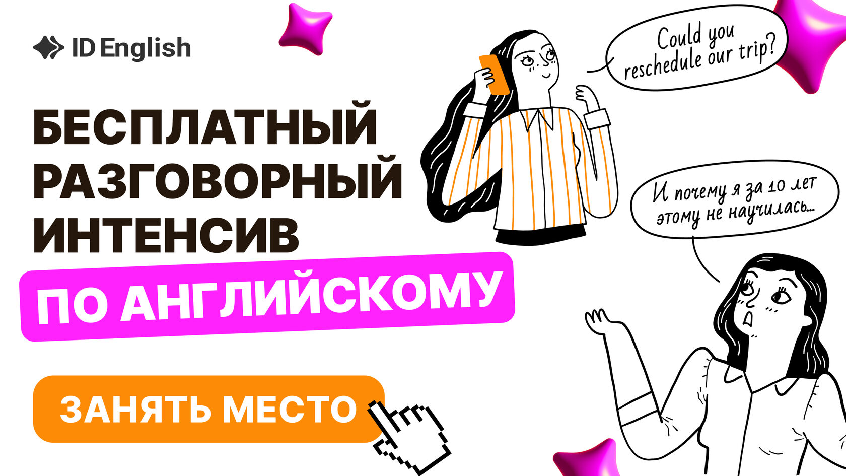 Не забудьте записаться буквально за 3 клика, чтобы попасть на эфиры без оплаты ⏬ | | | | С любовью, команда лучшей школы английского ID English! | | | |