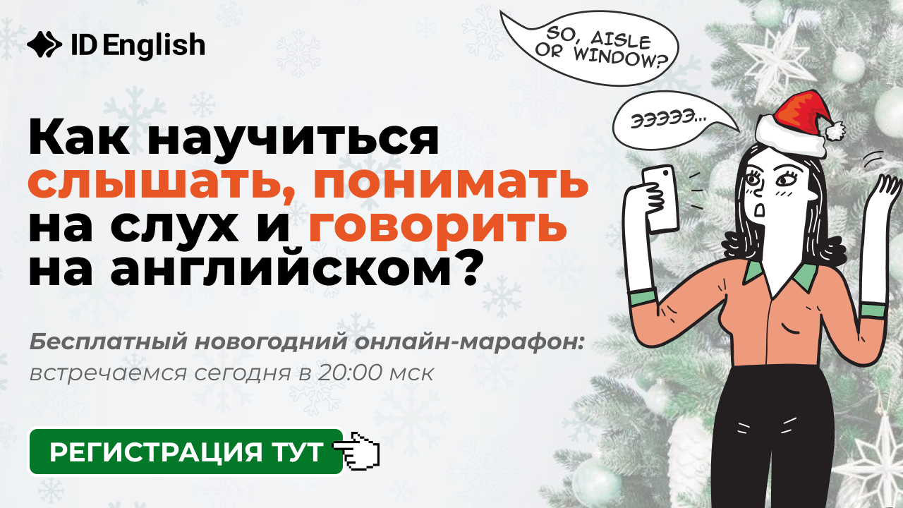 | | | Программа онлайн-марафона или что вас ждёт в ближайшие дни: ⏩ Как учить слова/фразы и не забывать их. ⏩ Как освоить грамматику без зубрежки и правил. ⏩ Разберем, что мешает понимать речь иностранцев на слух и как улучшить свое произношение. В конце каждого эфира вы будете открывать новогодний презент, который сделает ваш путь в английском еще короче и легче 🎁📅 Встречаемся 6-8 января в 20:00 мск.Если вы еще не снами, то самое время присоединиться и получить реальную пользу. Новогодний онлайн-марафон для тех, кто:- Учил английский в школе, но уже ничего не помнит.