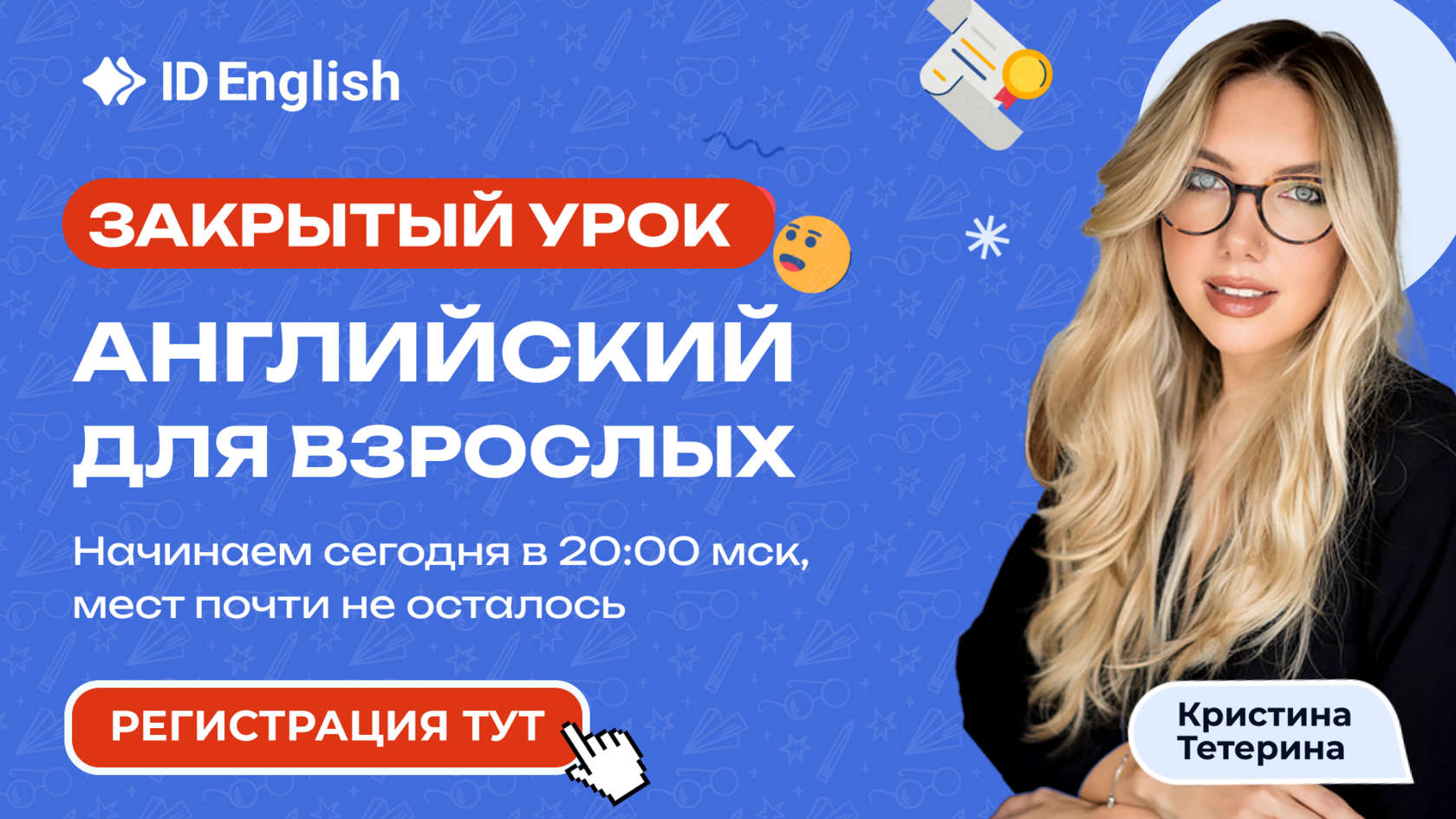 Мечтаете об английском годами и все время откладываете? Вот и очередной понедельник прошел, а язык так и не появился в вашем расписании. Может быть хватить тянуть и откладывать? Ведь если вы сделаете первый шаг сейчас, то уже через 3 месяца будете говорить. Получите свободу в путешествиях, новую работу и уверенность в себе. Начинайте прямо сегодня с закрытого урока для подписчиков школы «Английский для взрослых. Методика от преподавателя, говорящего на 3-х языках». Эфир пройдет онлайн уже сегодня 29 января в 20:00 по мск. Из урока вы узнаете:- Как выучить язык во взрослом возрасте с нуля или с минимальной базой?