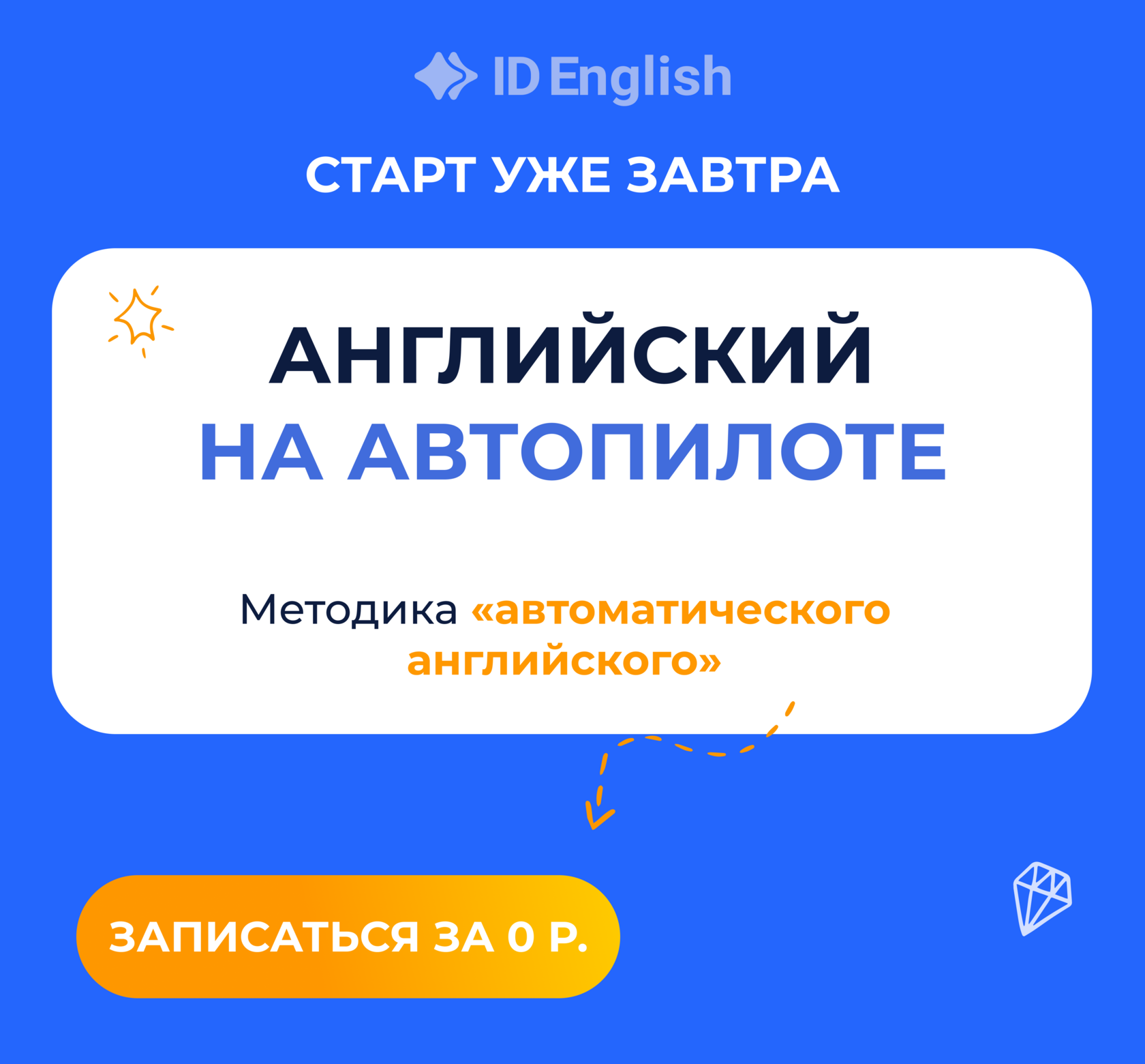 ✋ Плюс всем участникам я вручу презент – мини-курс английского. А одному счастливчику достанется еще и полугодовое обучение в ID English. | | | | *Есть только 8 мест без оплаты. И потом участие будет стоить 790 р.