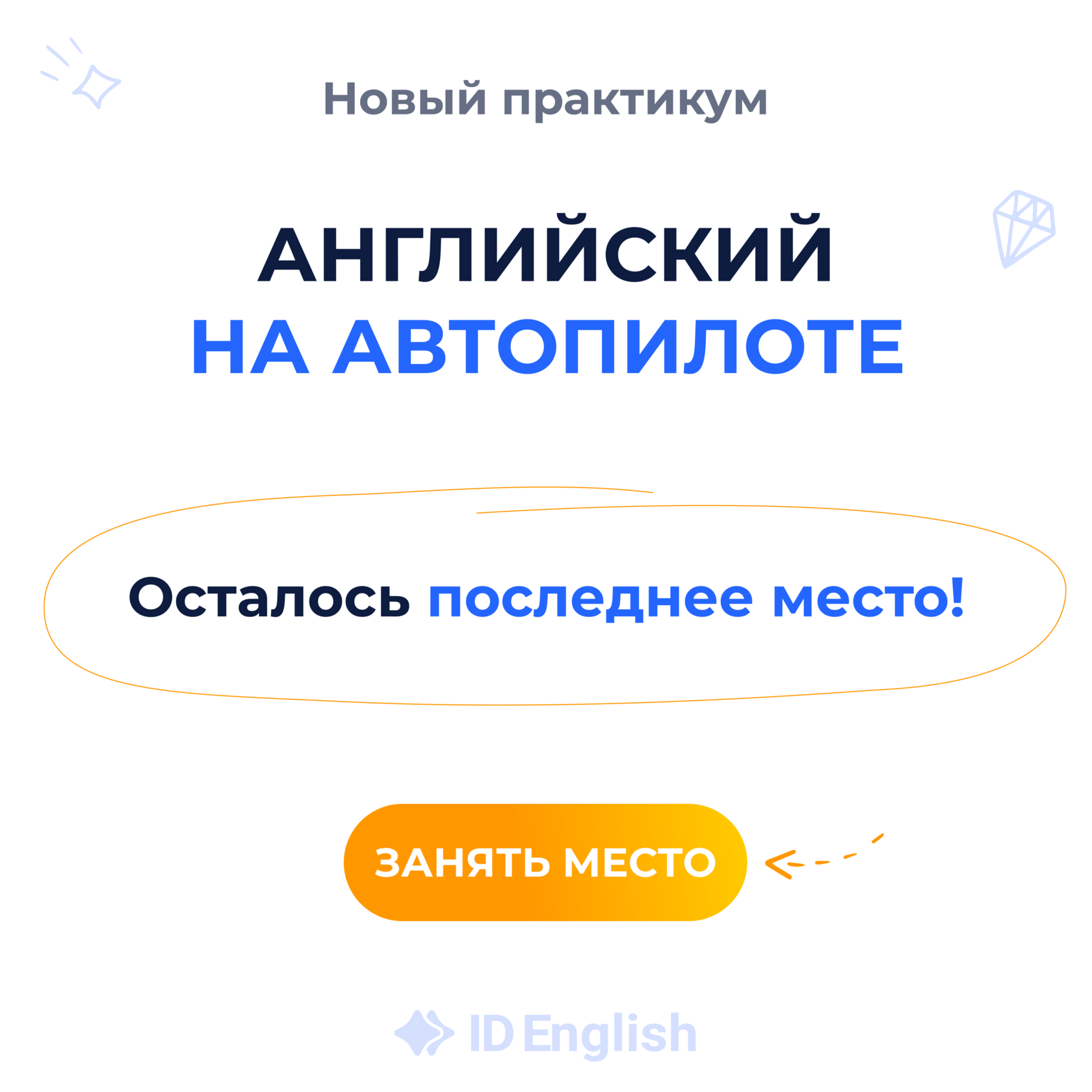 Последнее место могут забрать в любую минуту. И потом стоимость участия будет 790 р. | | | | ✋ Плюс всем участникам я вручу презент – мини-курс английского. А одному счастливчику достанется еще и полугодовое обучение в ID English.
