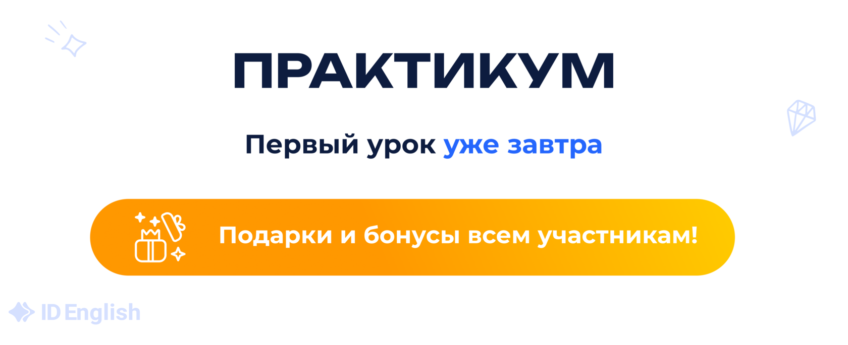 ✋ Плюс всем участникам я вручу презент – мини-курс английского. А одному счастливчику достанется еще и полугодовое обучение в ID English. | | | | *Осталось пара мест на практикум без оплаты. И потом участие будет стоить 790 р.