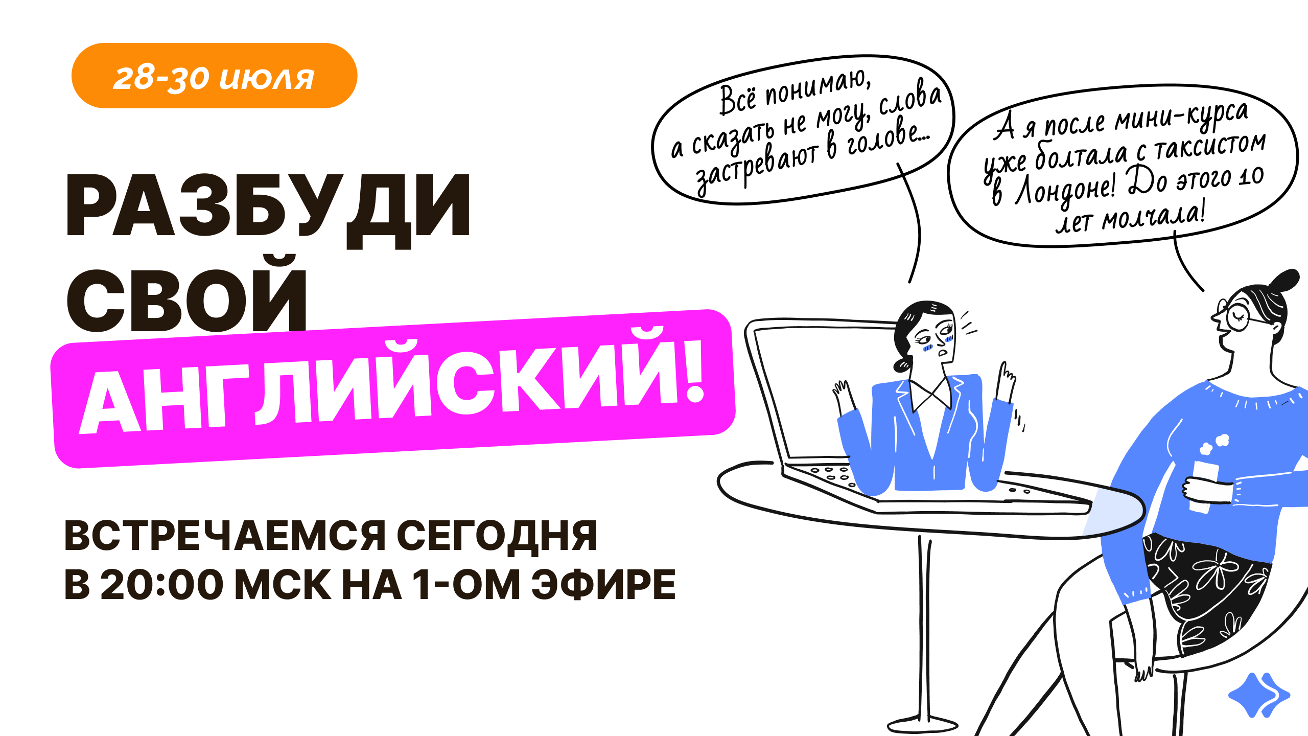 ✴️ Доступ ко всем 3 эфирам мини-курса: 28, 29, 30 июля. ✴️ Пошаговую систему, как начать говорить на английском уже через 3 месяца. ✴️ Конкретные упражнения, которые дадут первые результаты уже сегодня вечером. ✴️ Домашки, подарки и поддержку прямо на эфире.