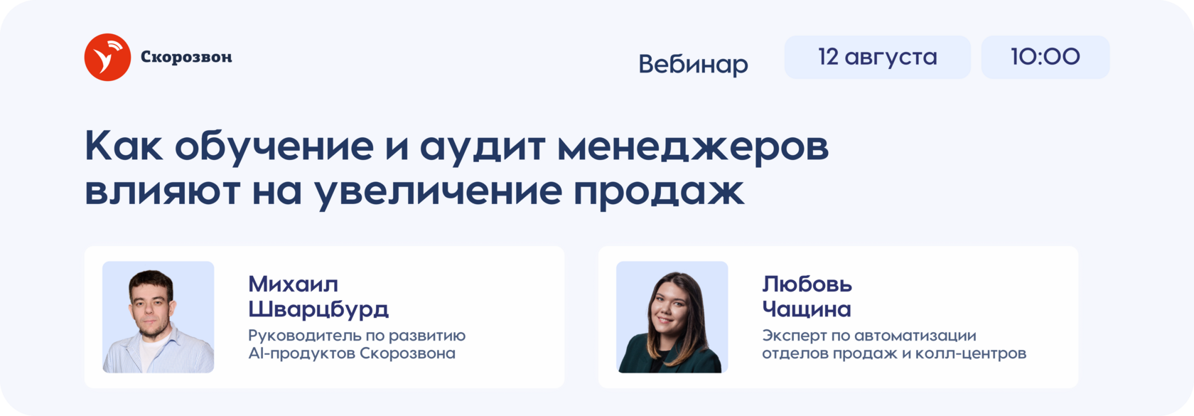 Михаил Шварцбурд, руководитель по развитию AI-продуктов Скорозвона, и Любовь Чащина, эксперт по автоматизации отделов продаж и колл-центров, разберут: