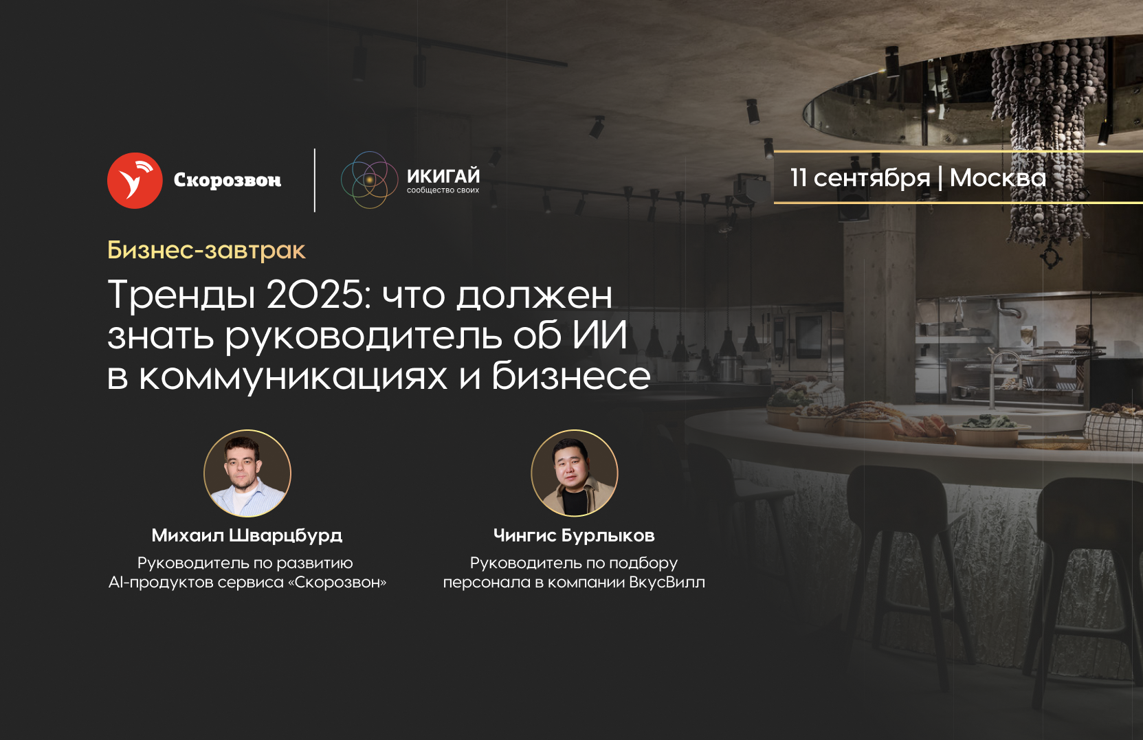 Проведём открытую дискуссию о том, как искусственный интеллект меняет ключевые процессы компаний. В обсуждении примут участие Михаил Шварцбурд, руководитель AI-проектов сервиса «Скорозвон», и Чингис Бурлыков, руководитель по подбору розничного персонала в компании ВкусВилл.
