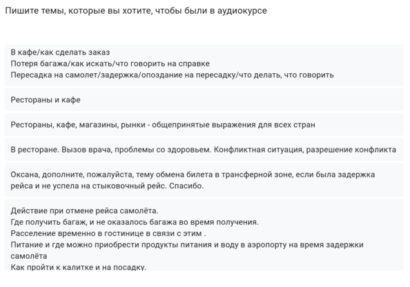 👉 Во-первых, многие из вас уже оставили свои пожелания для тем в новом АудиоКурсе "Английский для Путешествий".