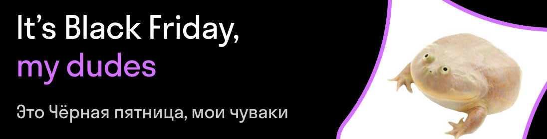 | Знакомьтесь, кстати. Чёрная пятница с нами немного потусит. Вы супер, она тоже. А значит, вы подружитесь! | | |