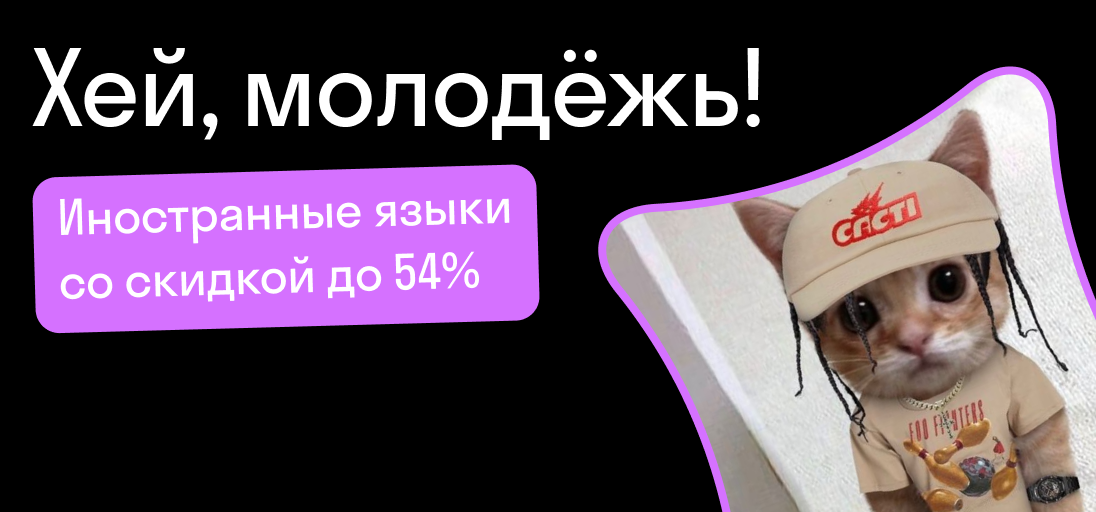 | Постараемся без кринге (to cringe — «сжиматься, съёживаться») и скажем просто: языки и для сериальчиков нужны, и для сёрфинга в Сети, и для отслеживания трендов. Ну, а для взрослых штук вроде работы и саморазвития они вообще отпад! Так что скидки до 54% на уроки с репетиторами — это прям улёт 💅 | | |