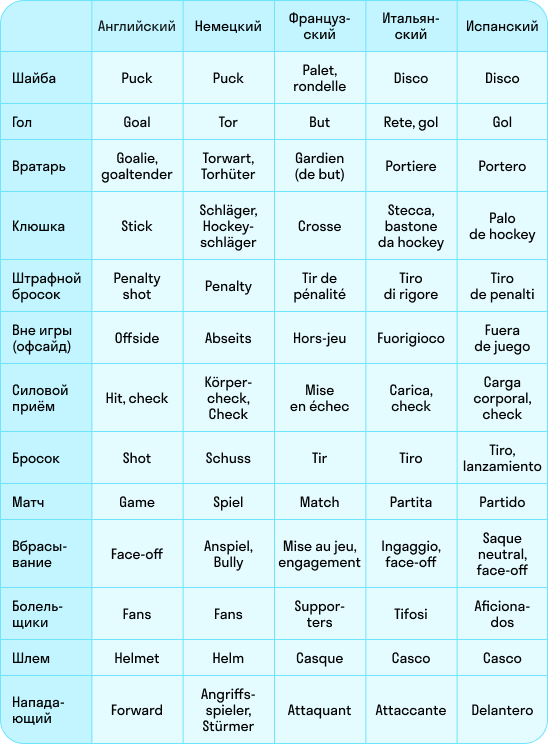 Где бы ни изобрели хоккей, он стал популярен во всём мире. И мы принесли вам базовую хоккейную лексику на пяти языках.