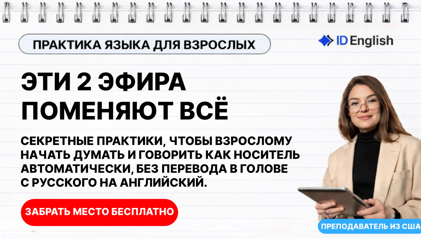⚡ Именно на этом построены уроки с практикой для взрослых «Метод автоматического английского: как начать понимать и говорить, не задумываясь, уже в начале 2026», которые стартуют завтра в 20:00 по МСК. | | | Это не марафон выносливости и не бесконечная теория. За 2 дня (14–15 января) мы: — Разберём, где именно ломается речь у взрослых; — Уберём перевод в голове, из-за которого вы зависаете; — Дадим простые схемы, которые позволяют начать говорить, даже если раньше было страшно; — Поработаем с реальными ситуациями — работа, поездки, повседневное общение. Моя задача — не «заставить вас учить английский». А показать мозгу результат быстро, чтобы он наконец сказал: «О, так это работает. Тогда можно продолжать». - ⭐ Участие для вас — 0₽, за счёт школы ID English. Мест осталось всего 10, чтобы сохранить формат живой практики.