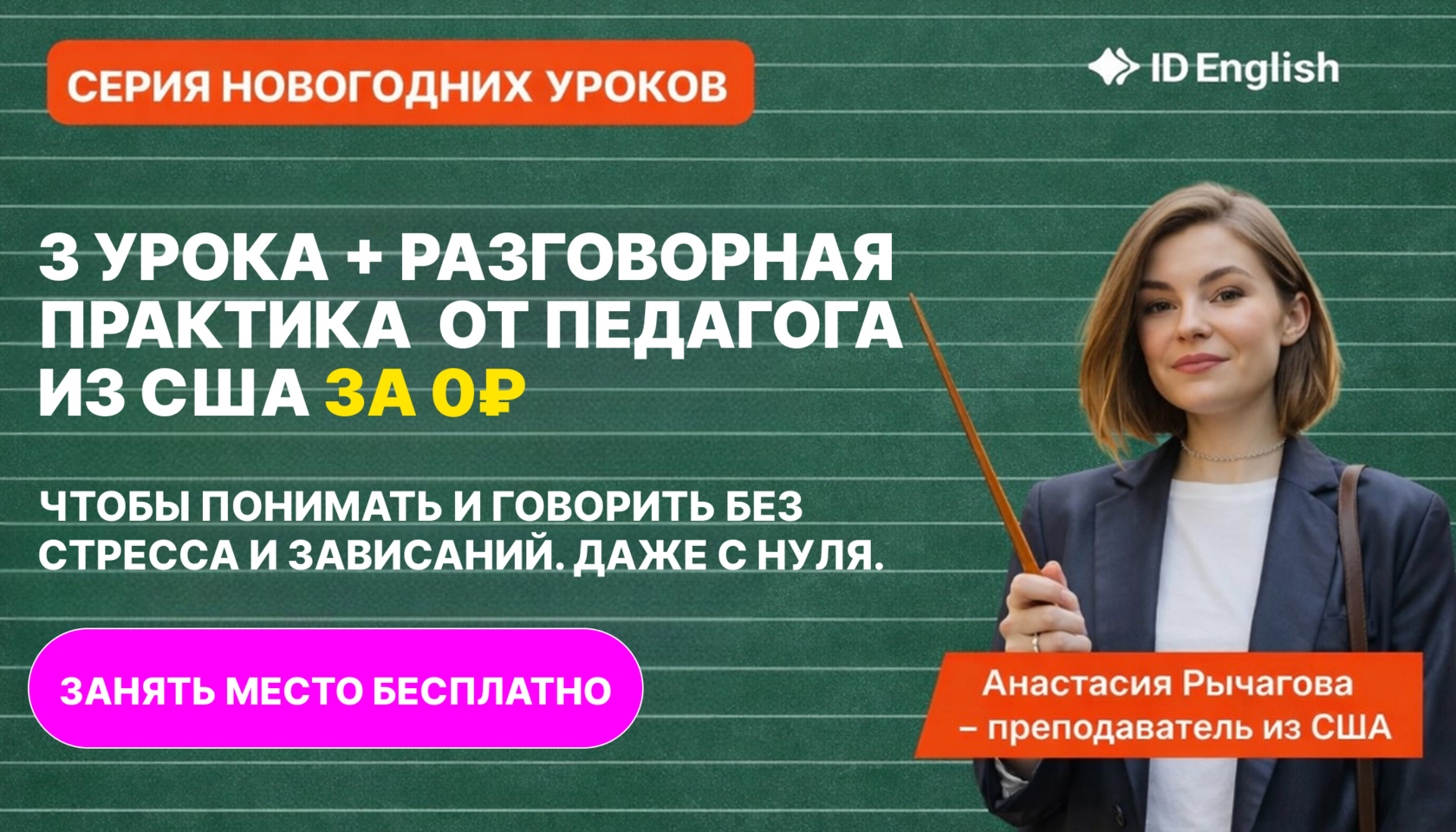 Отличная новость для вас – серия новогодних уроков «Минимальная база английского, чтобы понимать и говорить уже в начале 2026 года» от Анастасии Рычаговой с разговорной практикой стартует уже в пятницу. Это не очередной марафон по английскому языку, это событие, где всего за 3 дня вы узнаете больше, чем за год обучения с репетитором: